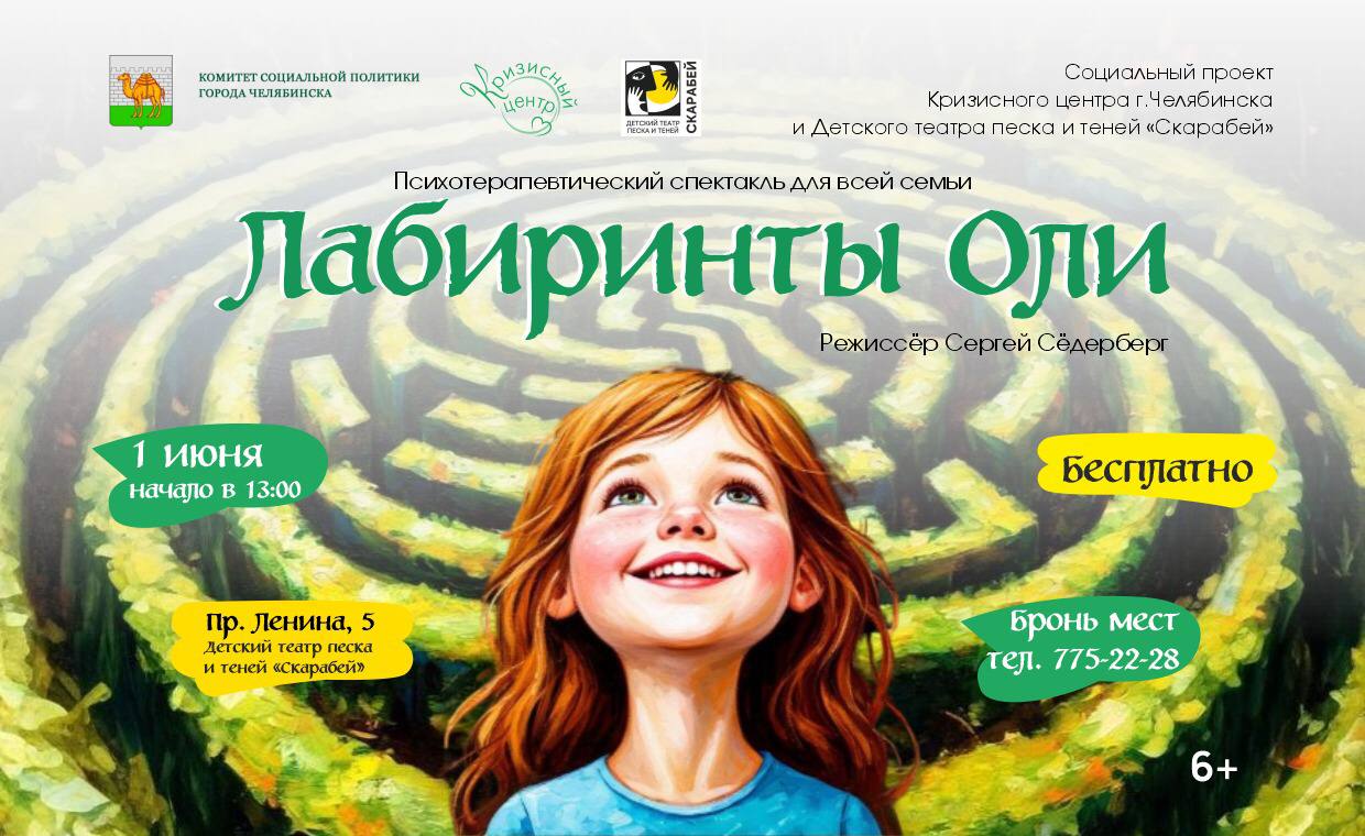 По случаю Международного дня защиты детей театр песка и теней "Скарабей" и Кризисный центр города Челябинска приглашают юных зрителей и их родителей на добрый и мудрый спектакль «Лабиринты Оли», созданный по мотивам книги известных психологов Ольги и Олега Хухлаевых.